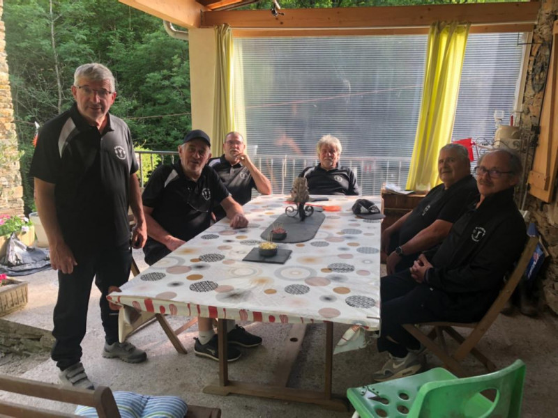 4° journée: Pour cette 4° journée, le "Plan Canicule" pour potéger nos chers vétérans a été mis en place en avançant les rencontres au matin 9h. Les parties "à la fraîche " ont sourit aux Réquistanais. Réquista se déplacait ce Jeudi 09 Juin à Saint Sernin pour jouer contre BROQUIES . Victoire de REQUISTA 20 à 16 ( 3 Tête, 2 Double, 1 Triple). Composition de l'équipe: Serge BERAIL (cap), Claude GIRARD, Françis TEYSSIER, Thierry VILLENEUVE, Françis TEYSSIER, Jean-Luc JOVER, Jean-Claude CRAYON. (Photo de l'équipe 2 , une fois de plus qui est rapide, car déjà ou encore à l'apéro